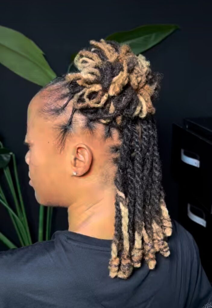This is perfect for thick or full hair. Twists give your locs a fuller look and hold up well during the budding stage.